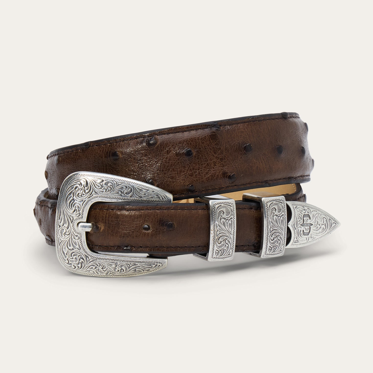Made from genuine Ostrich leather, this men's belt has a 1 ⅜”-1” tapered strap and is fully lined with leather. It features five holes on the point end to ensure a proper fit for all body types and is finished with a four-piece silver-tone Stetson buckle set. At once rugged and refined, our exotic belts embody our legendary commitment to quality and attention to detail.