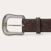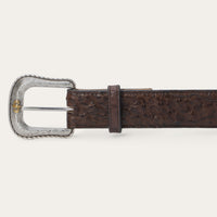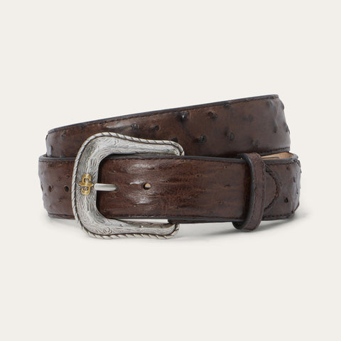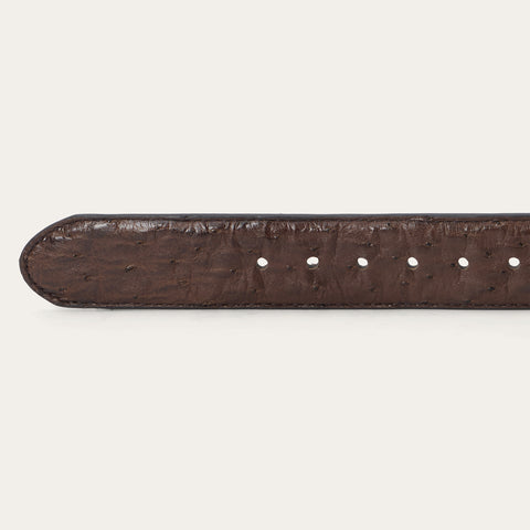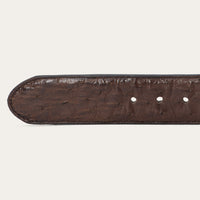 Crafted from genuine Ostrich leather, this belt has a 1 ½” wide black cowboy classic Ostrich leather strap with western tabs. It features seven holes on the point end to ensure a proper fit for all body types and is finished with a two-tone Stetson buckle. Combining timeless western style with statement-making luxury materials, each of our exotic belts embodies our legendary commitment to quality and attention to detail.