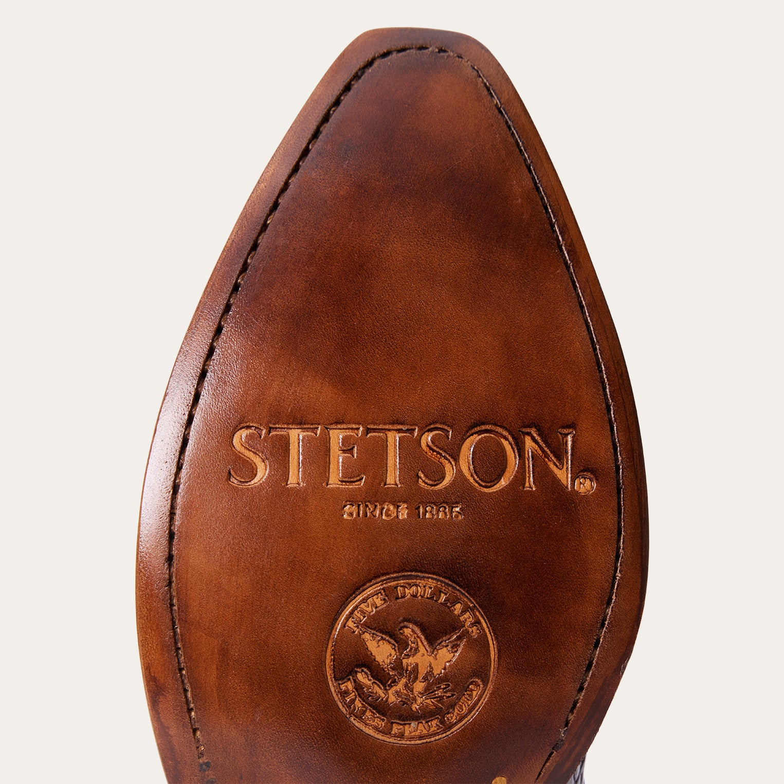 The 160th Anniversary Collection celebrates John B. Stetson’s founding of his namesake company in 1865 and embodies his original commitment to quality and craftsmanship. Each limited-edition boot is marked by a signature Five Dollar Gold Coin stamp—a nod to the price paid for the first Stetson ever sold, by John B. Stetson to a passing bullwhacker in the Colorado Rockies in the early 1860s—and a gold “160” embroidered detail.