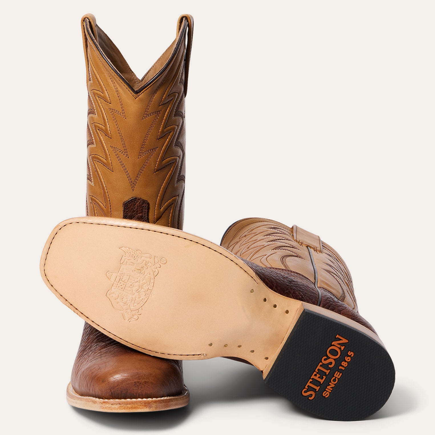 Our boots are made with the same care and consideration that goes into our legendary headwear, resulting in the ultimate mix of heel-to-toe comfort, rugged durability, and timeless western style. Crafted in the bootmaking capital of León, Mexico—where the tradition of creating frontier-ready leather footwear dates back to the mid-17th century—each pair takes approximately 40 hours and 200 individual steps to complete. They are lasted and stitched entirely by hand, using high-quality leathers that will develop an attractive patina over time and welt construction that allows them to be resoled as needed. Equally fit for days on the range or nights on the town, they’re made to go the extra mile.