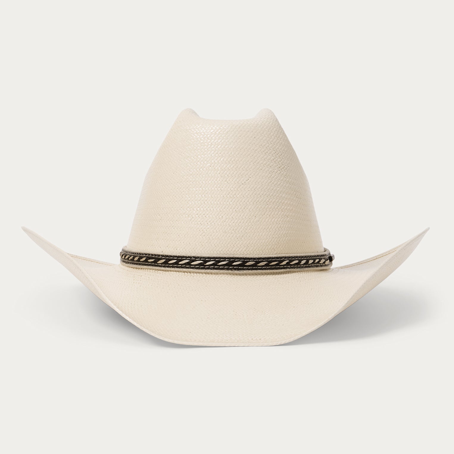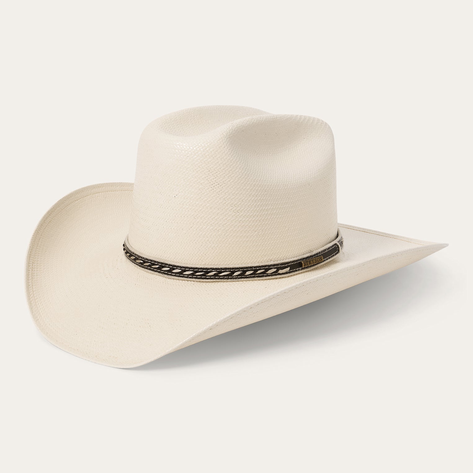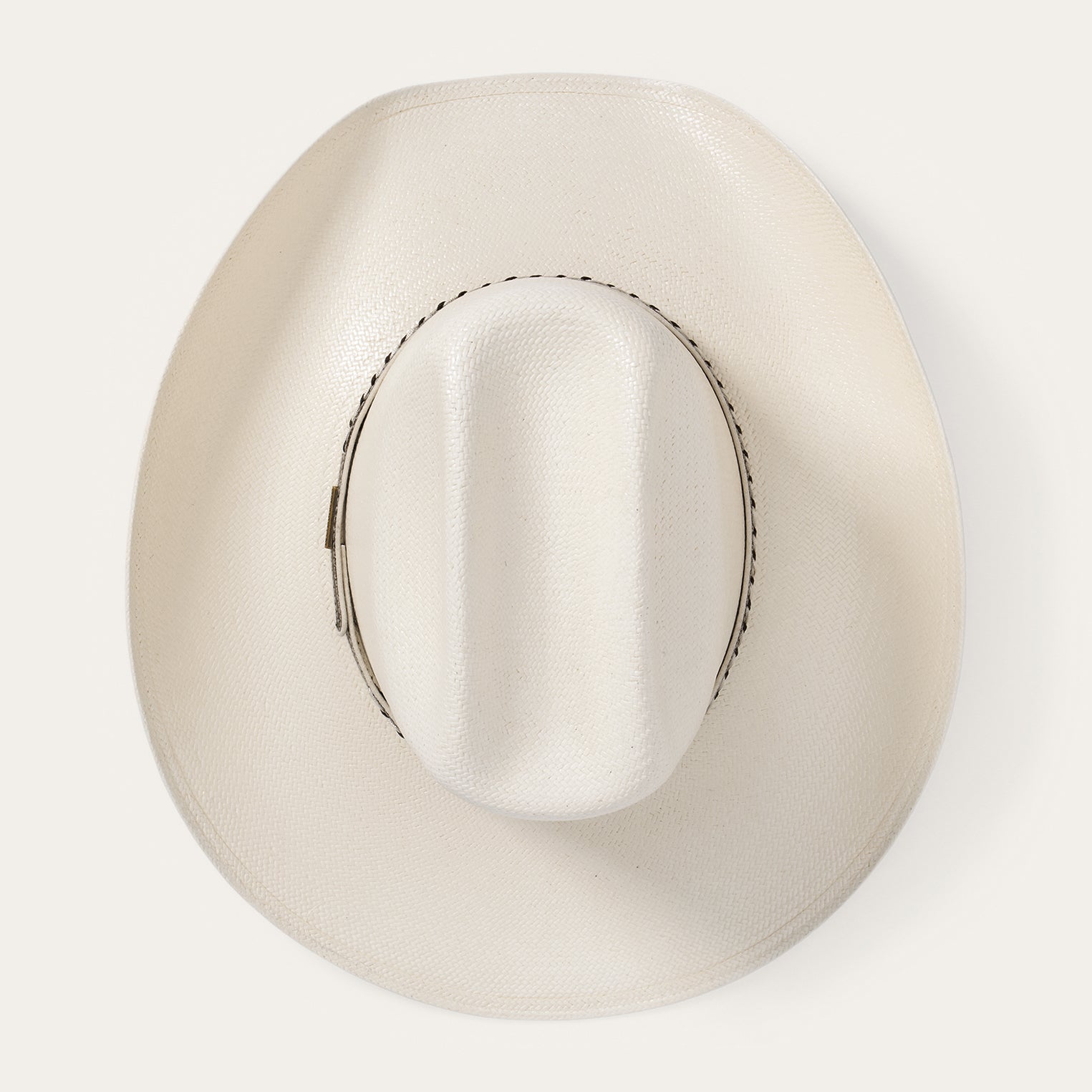 The Warren 10X is handmade in the U.S.A. from 10X quality shantung straw, which is lightweight and durable with a smooth feel. It has a long oval shape, a 4 1/2" tall cattleman crown, a 4” medium curved brim and a pick-stitch leather hatband. An absorbent DRI-LEX® sweatband provides a cool, comfortable, all-day fit.