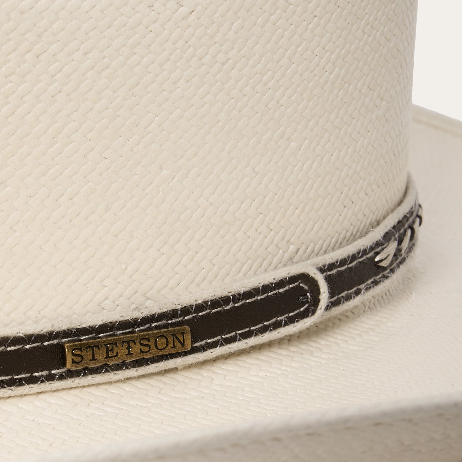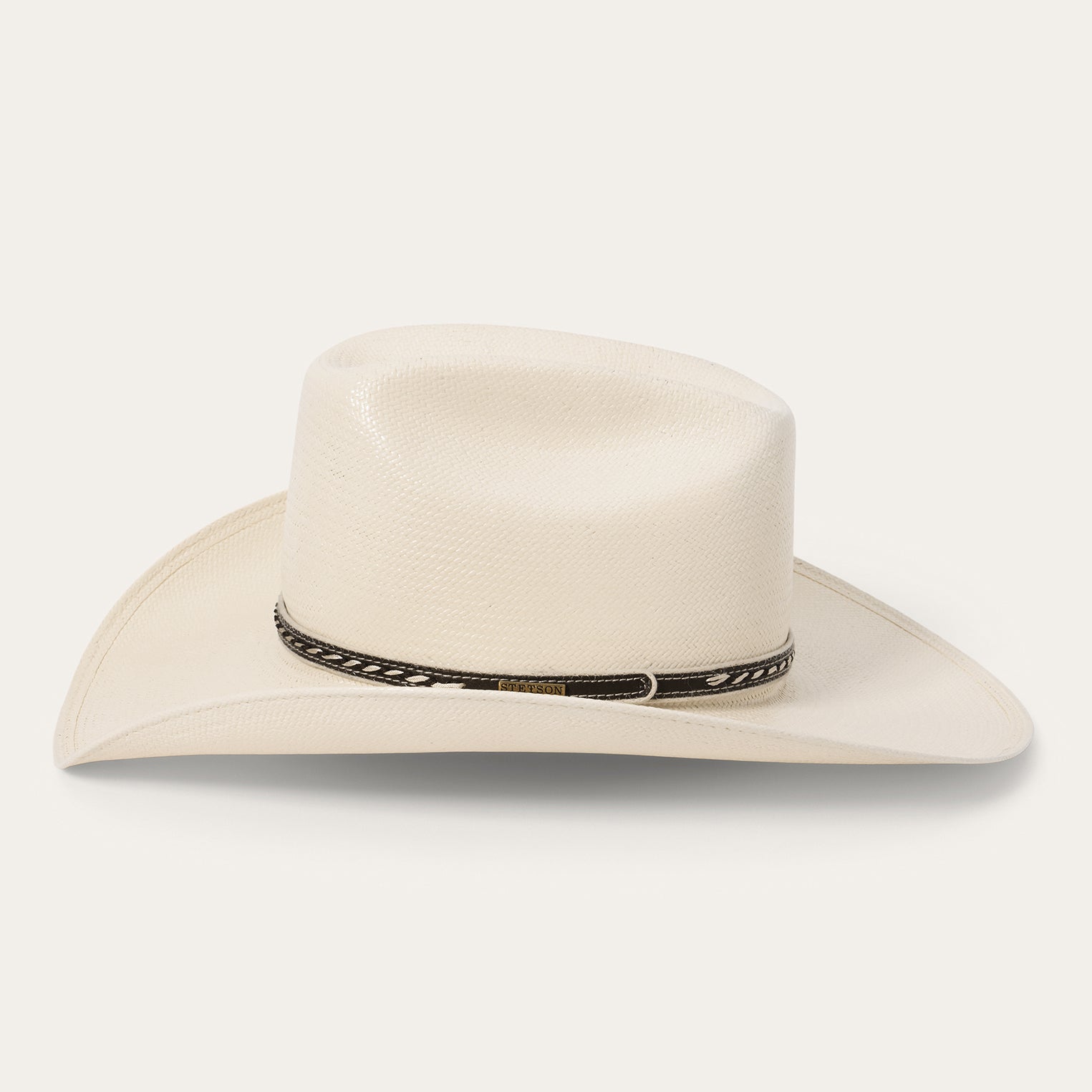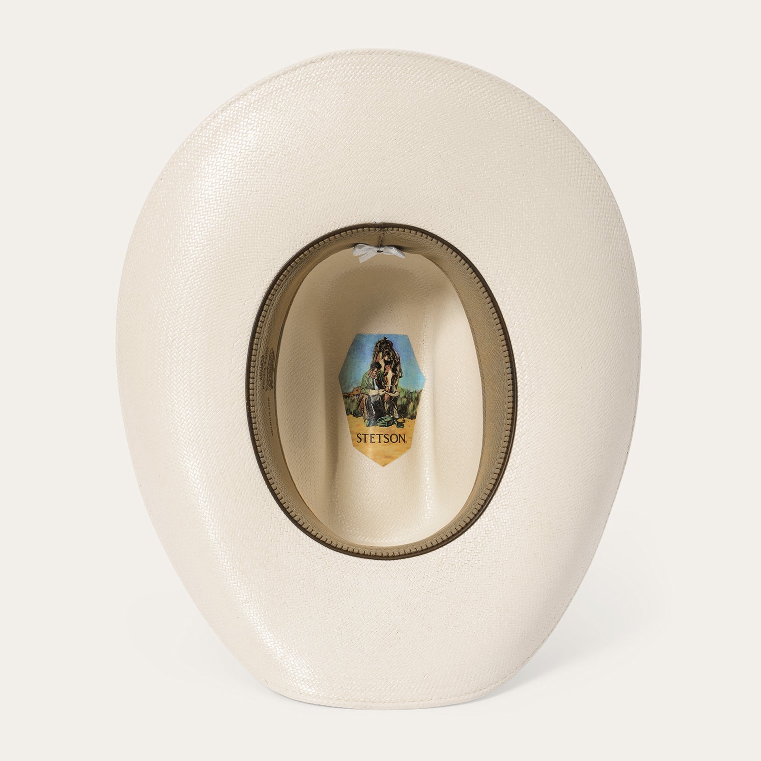 The Warren 10X is handmade in the U.S.A. from 10X quality shantung straw, which is lightweight and durable with a smooth feel. It has a long oval shape, a 4 1/2" tall cattleman crown, a 4” medium curved brim and a pick-stitch leather hatband. An absorbent DRI-LEX® sweatband provides a cool, comfortable, all-day fit.
