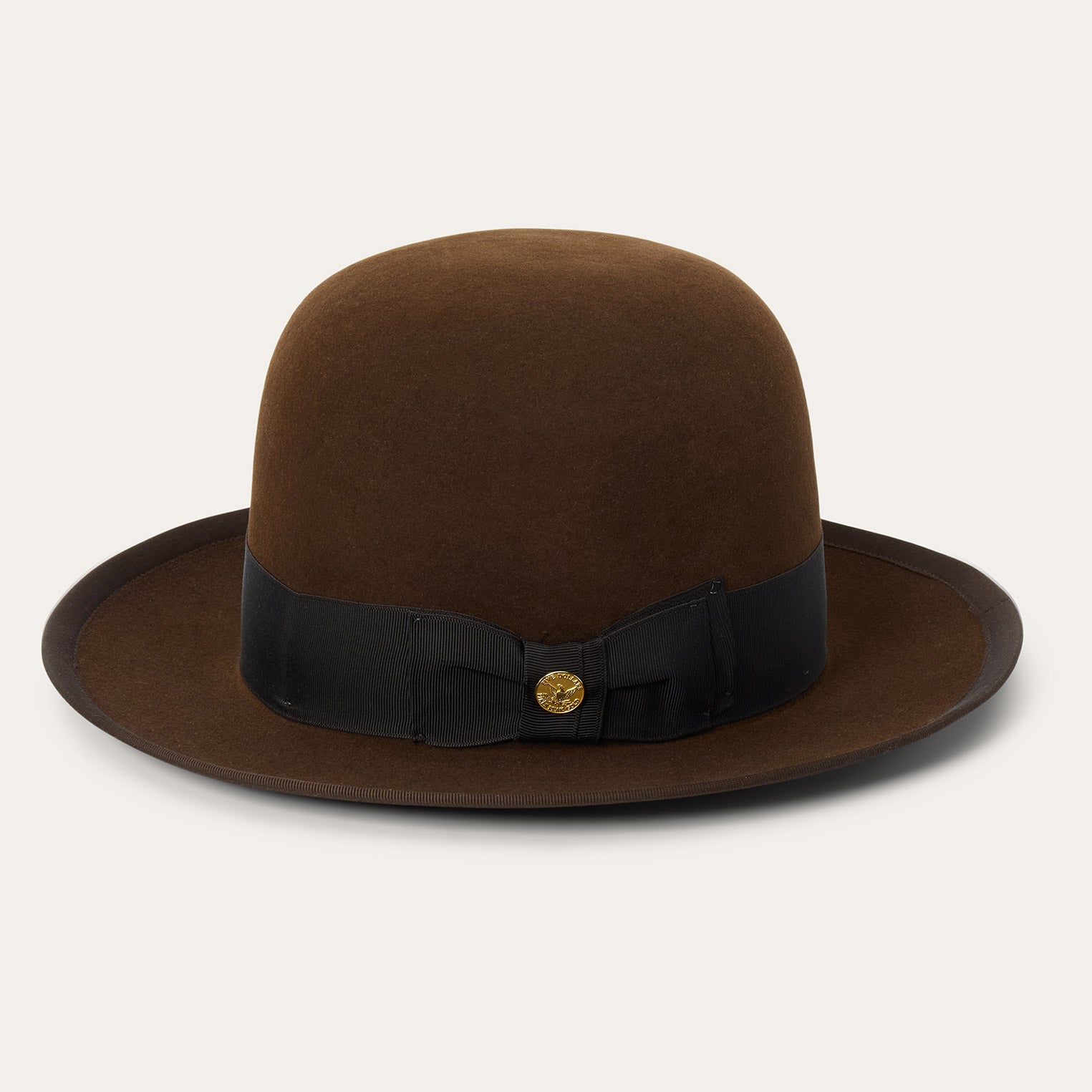 The Stetsonian 160th Edition pays tribute to—and continues— our rich 160-year history of impeccably crafting the finest dress hats for men. It has a vintage-inspired profile that recalls the elegant, rakish styles of the early 20th century when open crown dress hats were often worn bowler-style or shaped to the customer’s preference. The Stetsonian features a tall 6” open crown that’s made to be hand-creased and a 2 ⅝” bound edge brim, complemented by a wide grosgrain band. Handmade in the U.S.A. from our proprietary Royal Deluxe quality fur felt, it has a soft, supple feel and a snappy, flexible finish.
