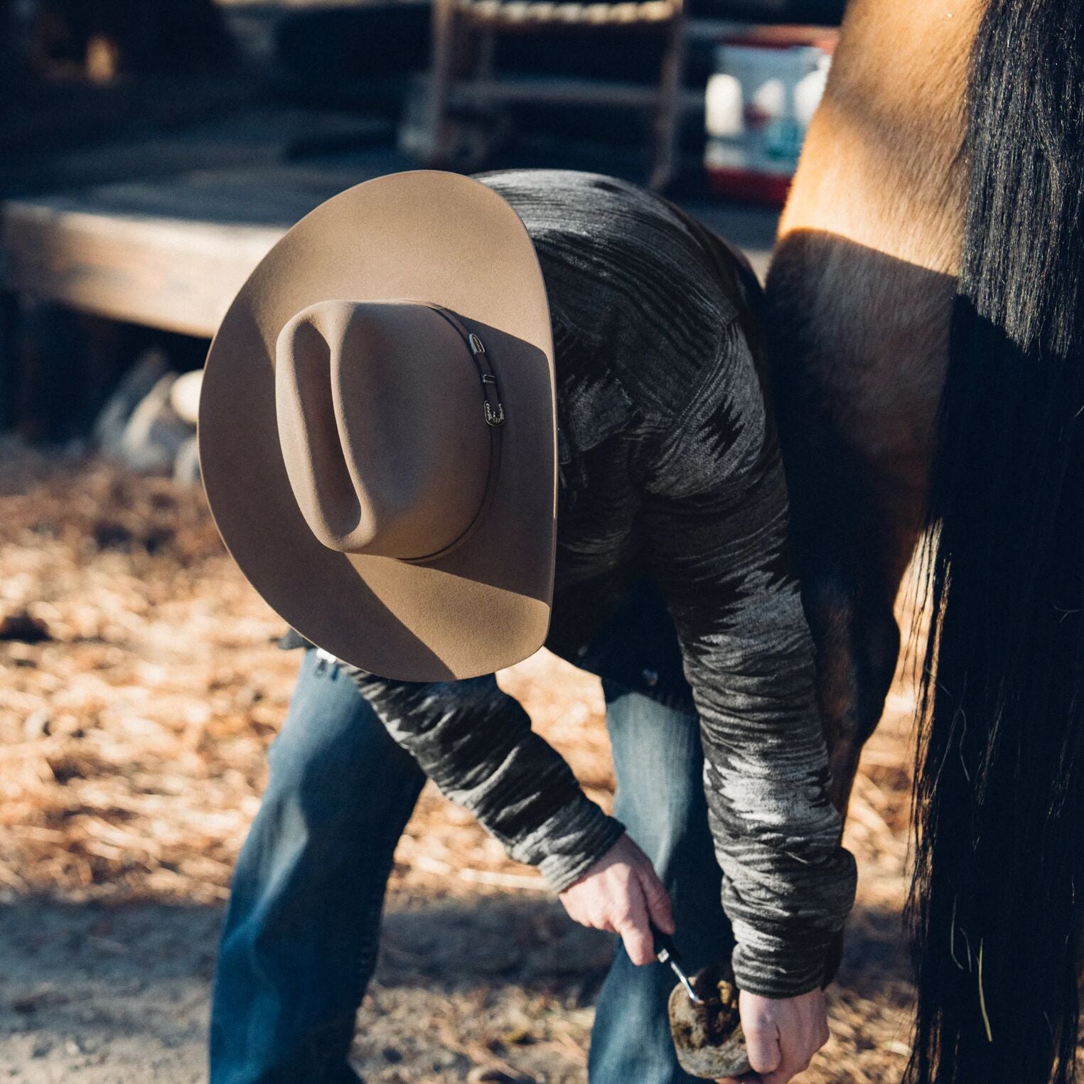 A true Stetson icon, our bestselling Skyline combines legendary quality and classic Western style in one timeless package. The Skyline is crafted from our proprietary 6X fur felt, which is prized for its durability and elegant feel, and, as with all hats that come out of our factory in Texas, each Skyline is touched by more than 100 sets of hands during production, resulting in a hat that is designed and built to stand the test of time. This edition features a 7242 profile, which translates to a 4 3/8” cattleman crown and 4 1/4” brim. Like all Skylines, it’s finished with a matching self-felt band and three-piece, silver-tone buckle. A handsewn genuine leather sweatband and full satin liner provide a time-tested fit and premium comfort.