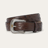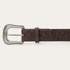 Crafted from genuine Ostrich leather, this belt has a 1 ½” wide antique cognac Ostrich leather strap with western tabs. It features seven holes on the point end to ensure a proper fit for all body types and is finished with a two-tone Stetson buckle. Combining timeless western style with statement-making luxury materials, each of our exotic belts embodies our legendary commitment to quality and attention to detail.