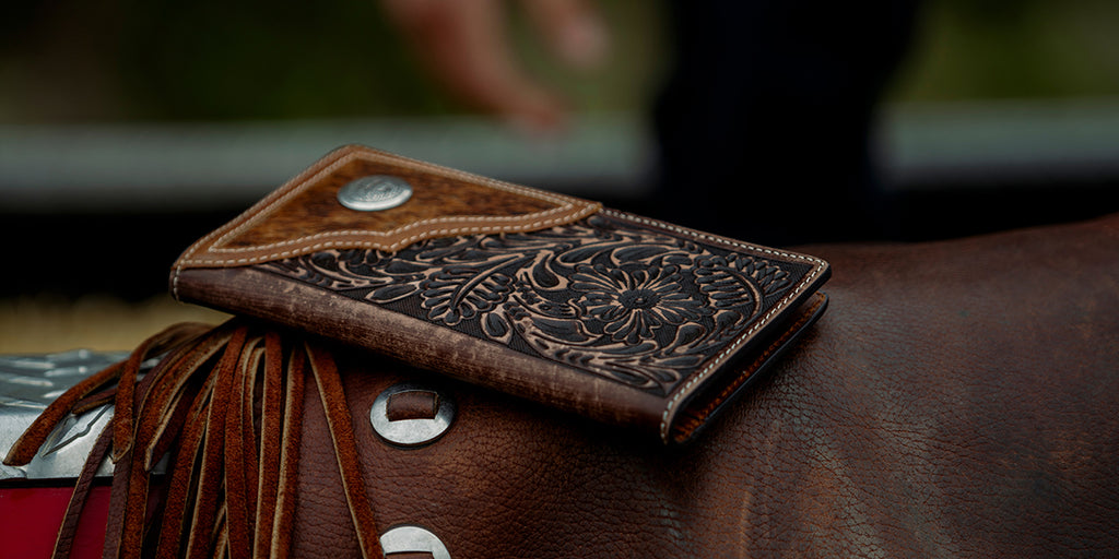 Western-inspired wallets, checkbooks and money clips crafted from high-quality top-grain and exotic leathers.