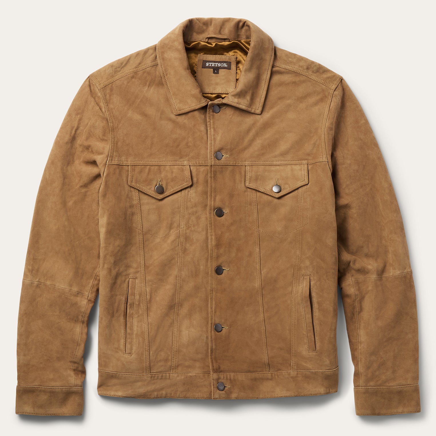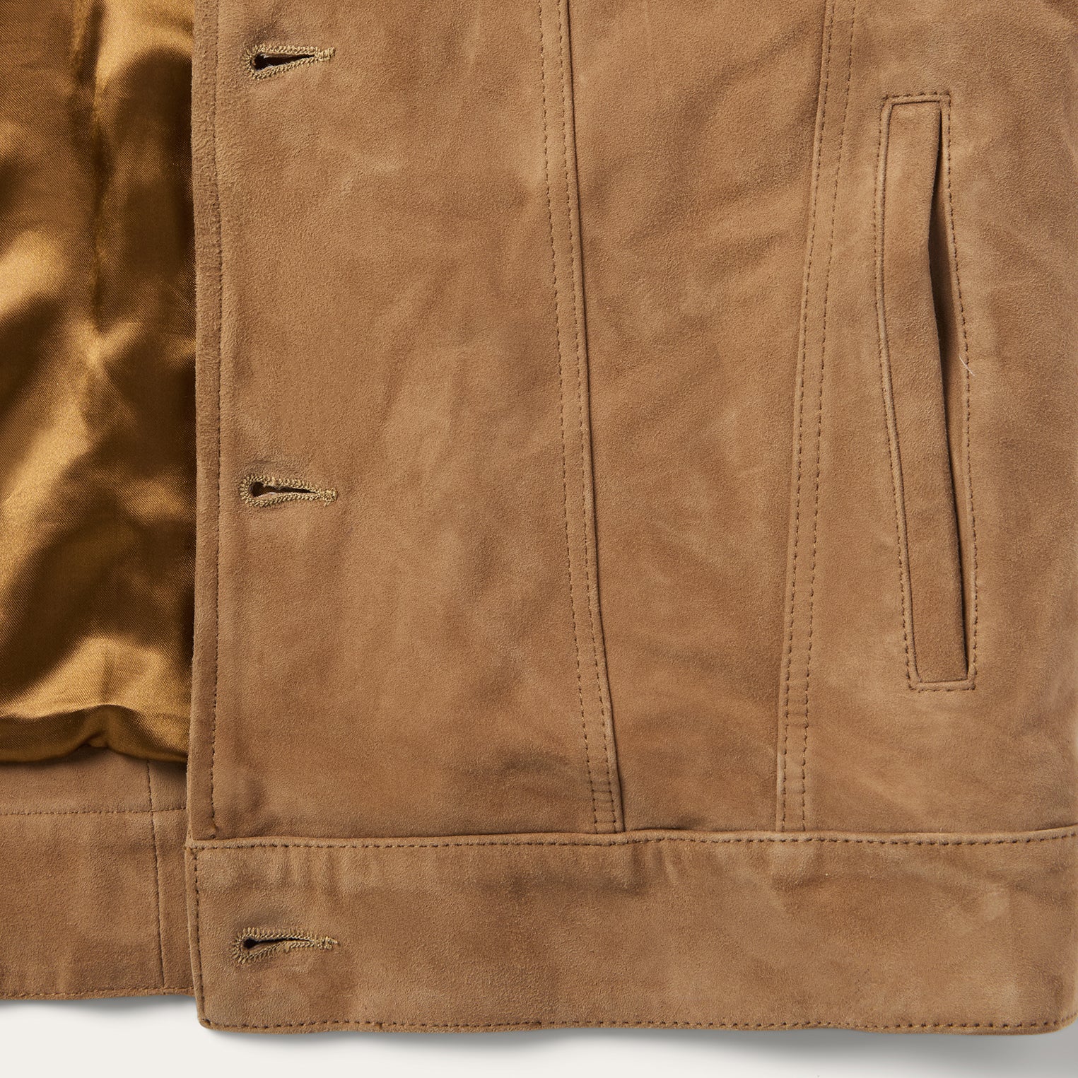 Crafted from high-quality suede leather, the Suede Trucker Jacket has a supple texture, an elevated feel, and timeless western character. It features straight front and back yokes, one-point curved pocket flaps, welt hand pockets, and a spread collar. Finishing touches include logo buttons, subtle “S” embroidery, adjustable back tabs, and a locker loop at the neck. A rugged layer with enduring style, made to wear well season after season.
