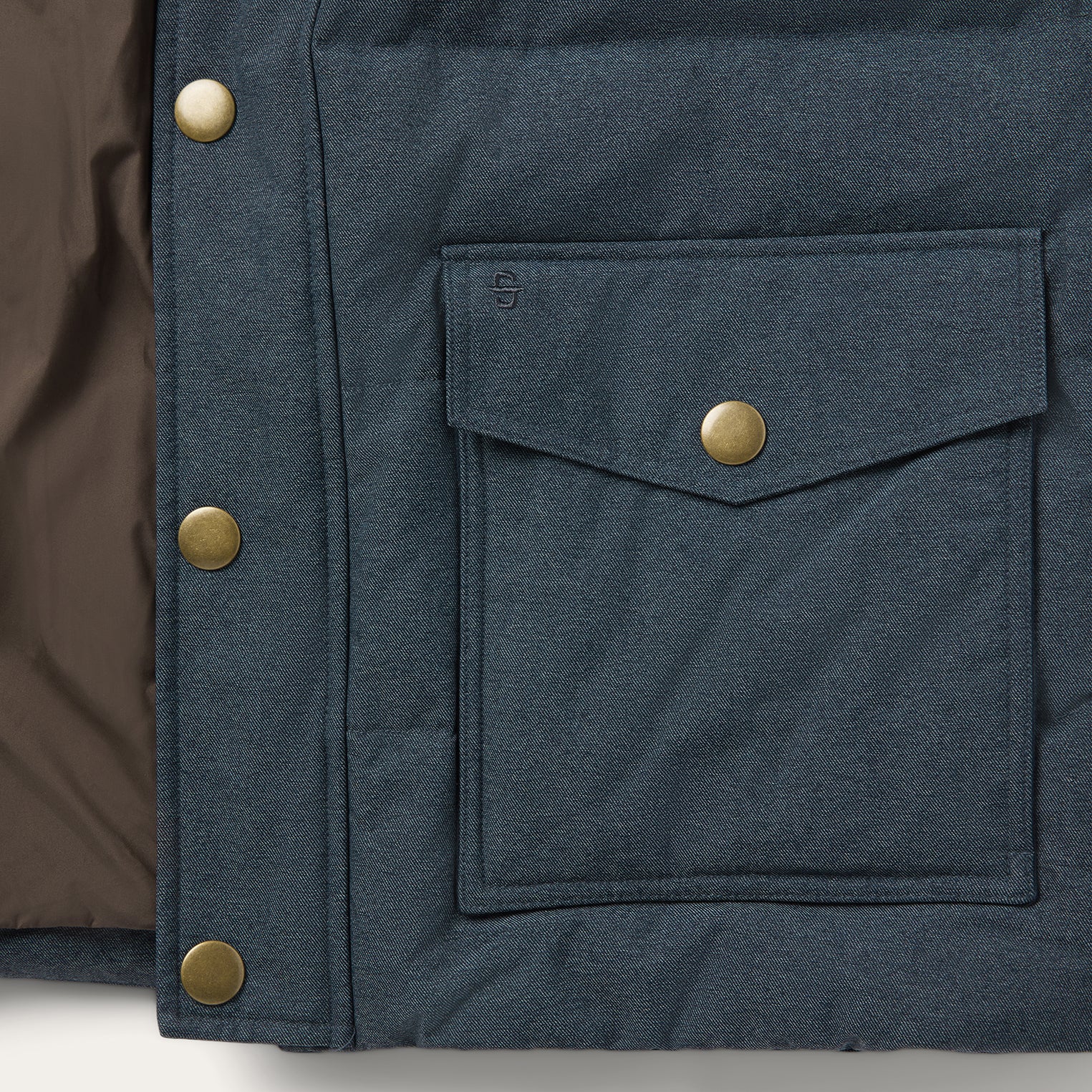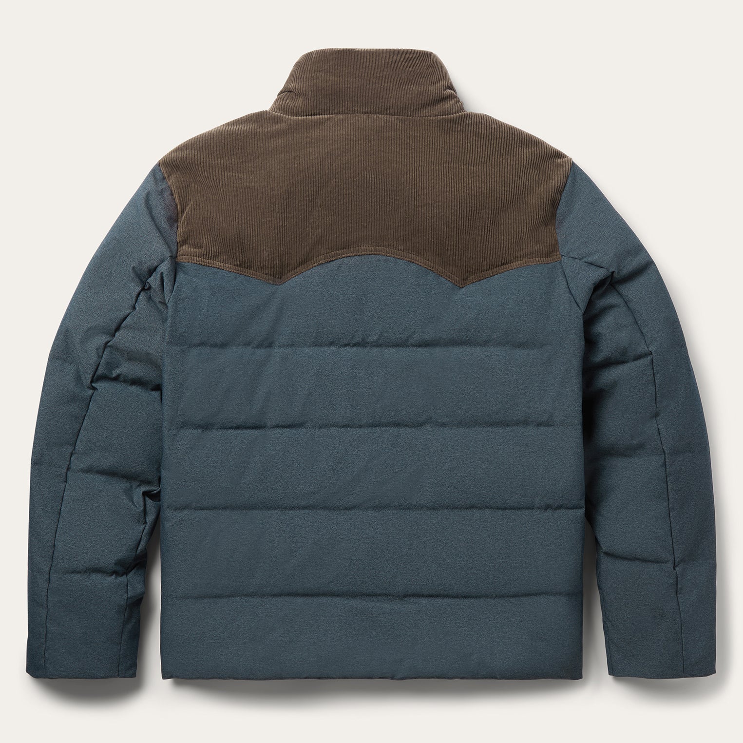 Lightweight, crushable, and designed for easy packing, the Western Down Fill Jacket delivers warmth without bulk. It's crafted from a durable poly-nylon shell with a rugged, denim-inspired appearance and filled with insulating down. It features classic western details including one-point curved front yokes, two-point curved back yokes, and corduroy shoulder panels. An ideal layer for travel or any cool-weather adventures.