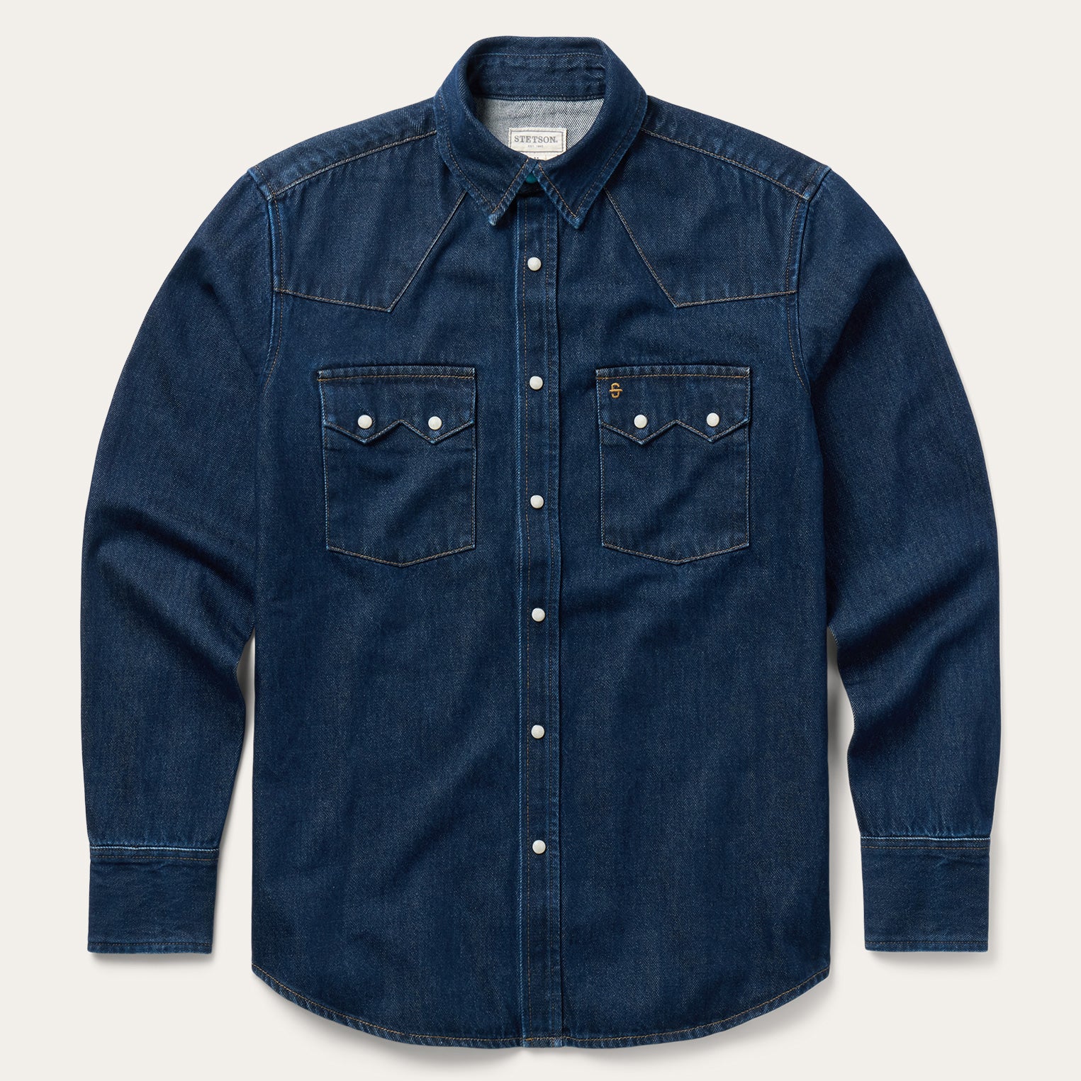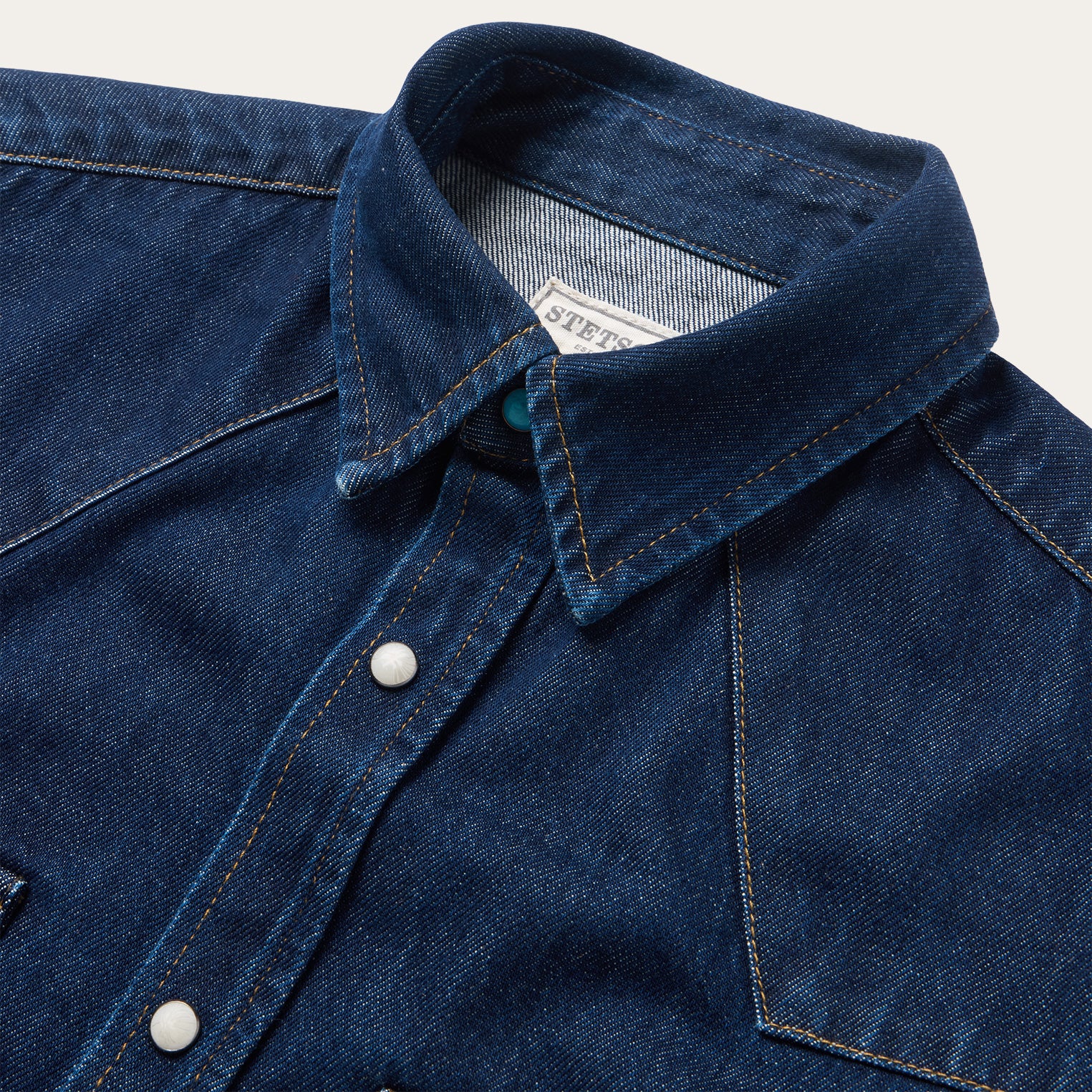 Rugged and timeless, the Raw Denim Western Shirt is crafted from high-quality raw cotton denim that will soften with wear as it develops its own unique fade. Single-point yokes and sawtooth pockets give it classic western character, while branded pearl snaps and a turquoise top snap add signature detail. It’s cut in our Tailored Fit, a versatile style that’s slightly tapered at the sides for a streamlined appearance and a shorter length designed to look great tucked or untucked. Like all of our men’s apparel, it’s designed for lasting comfort, quality, and style—from sunup to sundown.