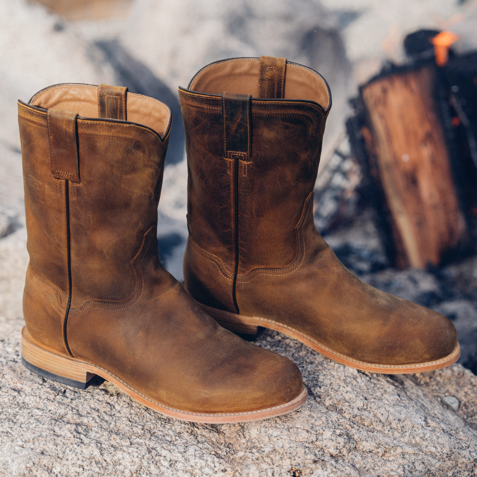 Leather boots made the old-fashioned way: with grit, determination and a acute eye for detail. Handcrafted by Stetson’s legendary bootmakers from Leather that’s designed to patina handsomely over time. Features include premium cow lining, full welt soles, brass nails and removable Tru-X insoles to provide additional support on long hikes. Built for riding, each pair is lasted, stitched and tooled by hand to ensure absolute comfort and performance. Frontier-tough, they conform to the wearer over time for years of reliable service. A classic addition to any wardrobe, these boots are a fitting companion for adventurers, cowboys, and gentlemen alike — anyone with a strong appreciation for objects that are made well and get better with age.