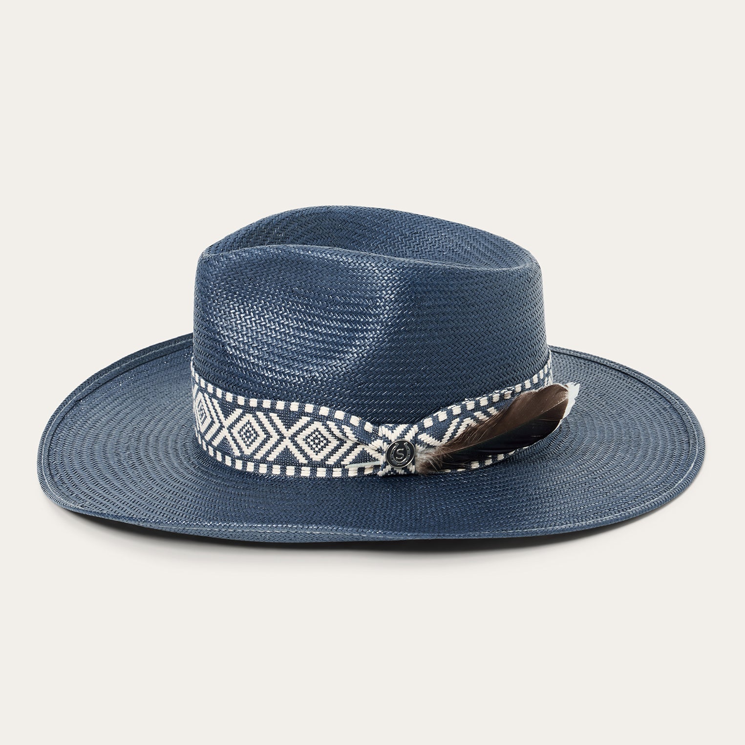 This straw fedora combines a timeless silhouette with statement-making details. Handmade in the U.S.A. from high-quality shantung straw, which is prized for its durability and smooth, lightweight feel, it features a 4 1/4” pinch front teardrop crown, a 3 1/2” flared overwelt brim, a two-tone woven hatband, horseshoe pin and removable feather detail. An absorbent DRI-LEX® sweatband provides a cool, comfortable, all-day fit.