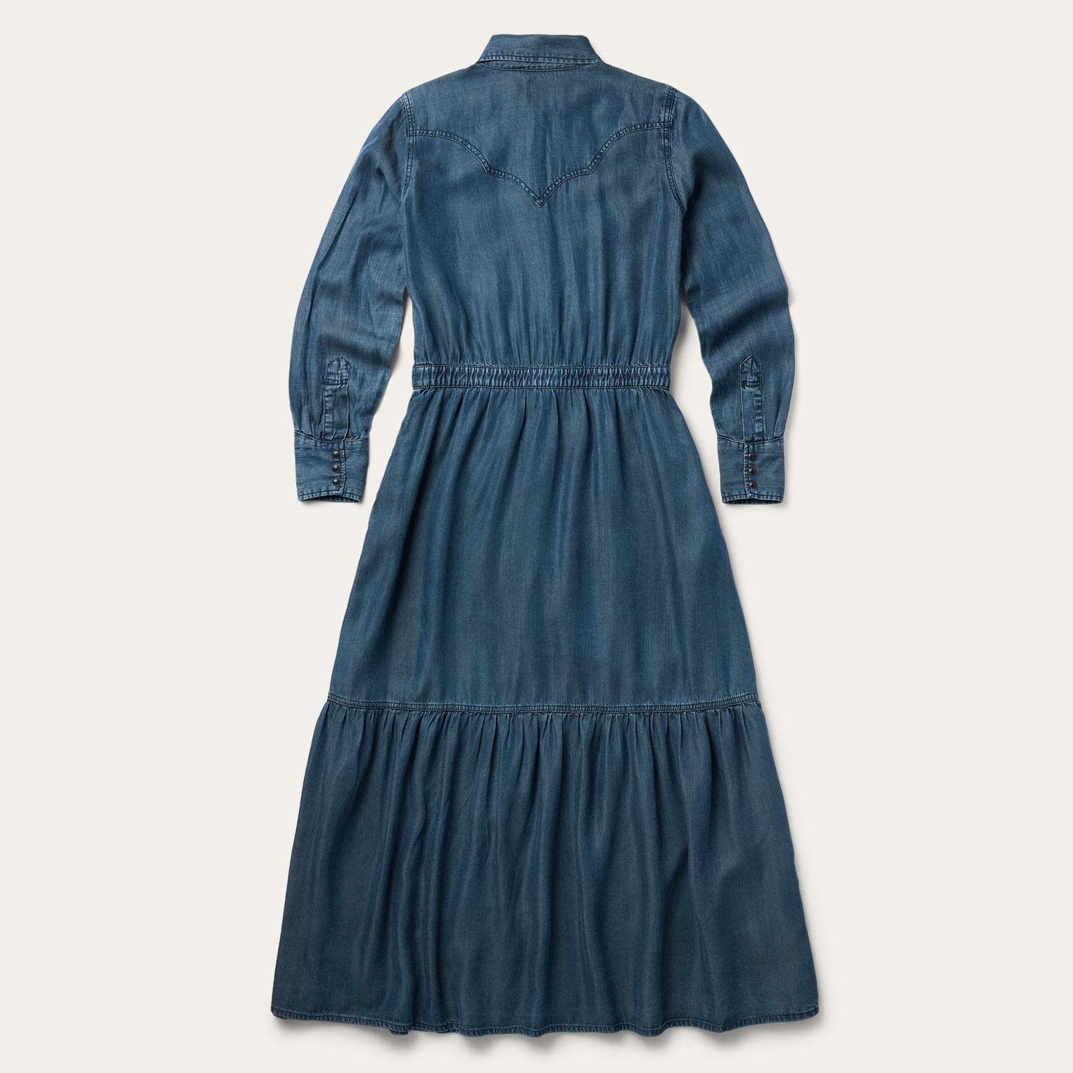 The Denim Western Maxi Dress is made from soft, breathable lyocell denim. Its full-length, two-tiered silhouette features classic western detailing—from single-point yokes to flap chest pockets, along with an elastic waist, gathered skirt, snap closure and side seam pockets. Like all of our women’s apparel, the Denim Western Maxi Dress is thoughtfully designed and crafted for lasting comfort, quality, and style—from sunup to sundown.