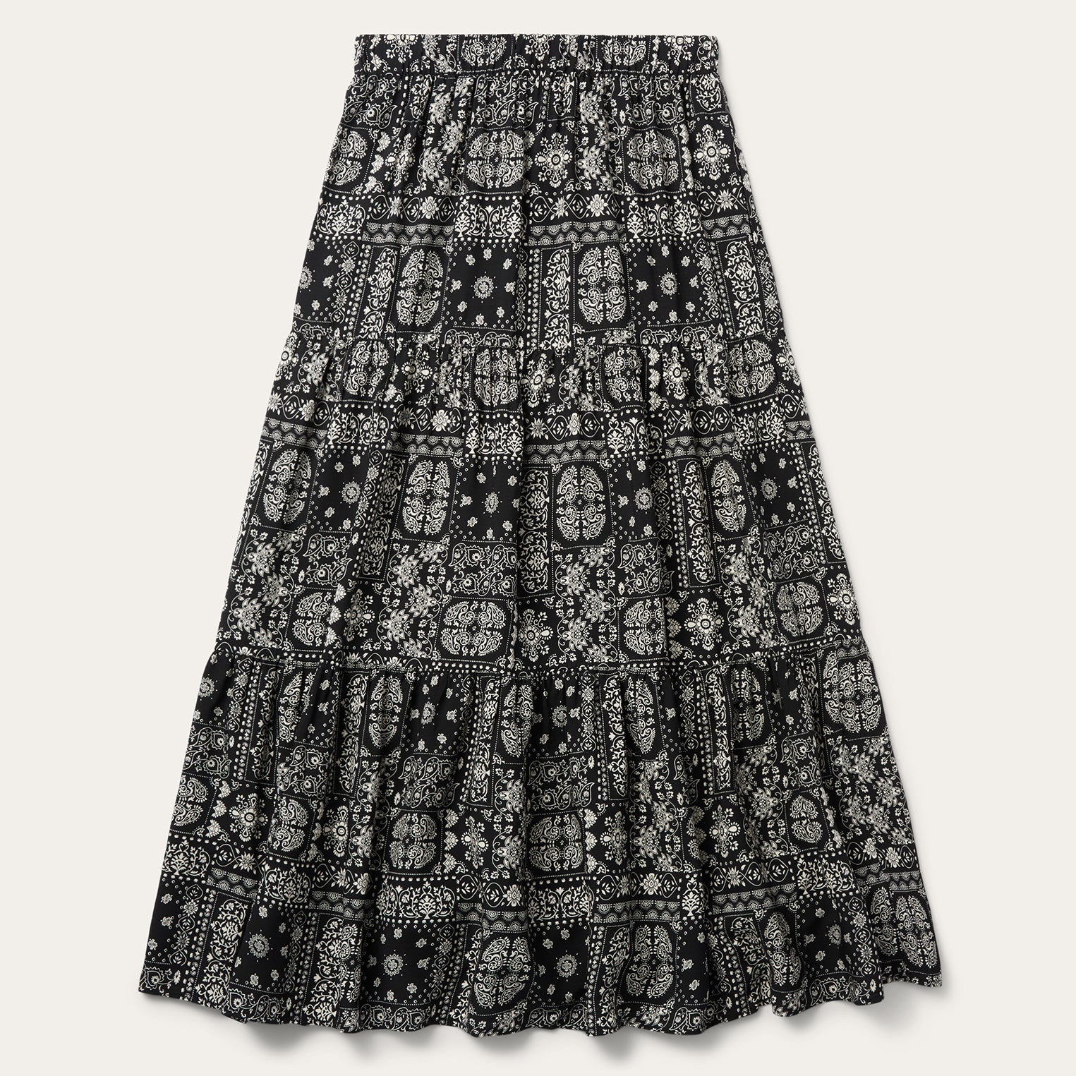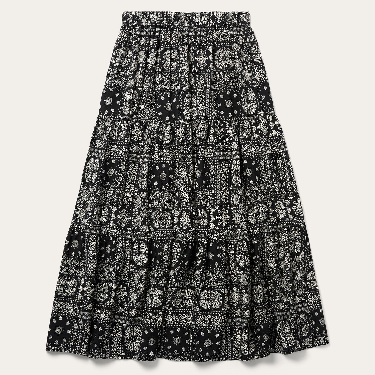 With its flowing tiers and striking black bandana patchwork print, the Bandana 3-Tiered Skirt is a timeless take to classic western style. It’s crafted from lightweight, breathable 100% lyocell with a soft handfeel and flattering drape. The pull-on design features an elastic waistband for ease and comfort, while side seam pockets add functionality.