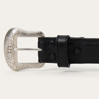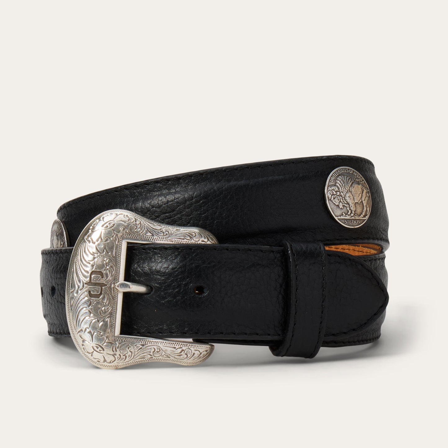 Made from genuine American Bison leather, this belt has a 1 ½” wide hazelnut Bison leather strap with tooled leather tabs and silver-tone Bison concho repeat. It features seven holes on the point end to ensure a proper fit for all body types and is finished with a silver-tone Stetson buckle. At once rugged and refined, each of our belts embodies our legendary commitment to quality and attention to detail.