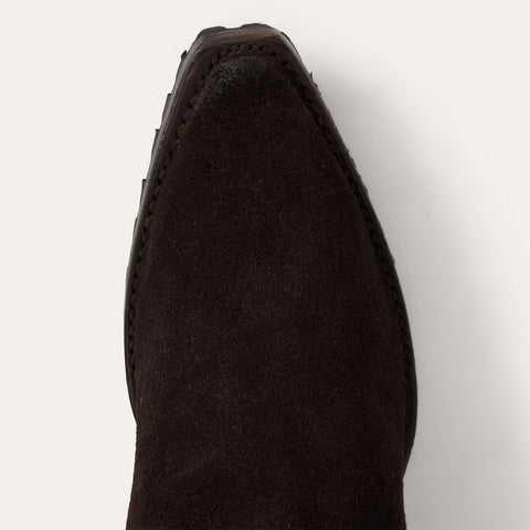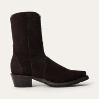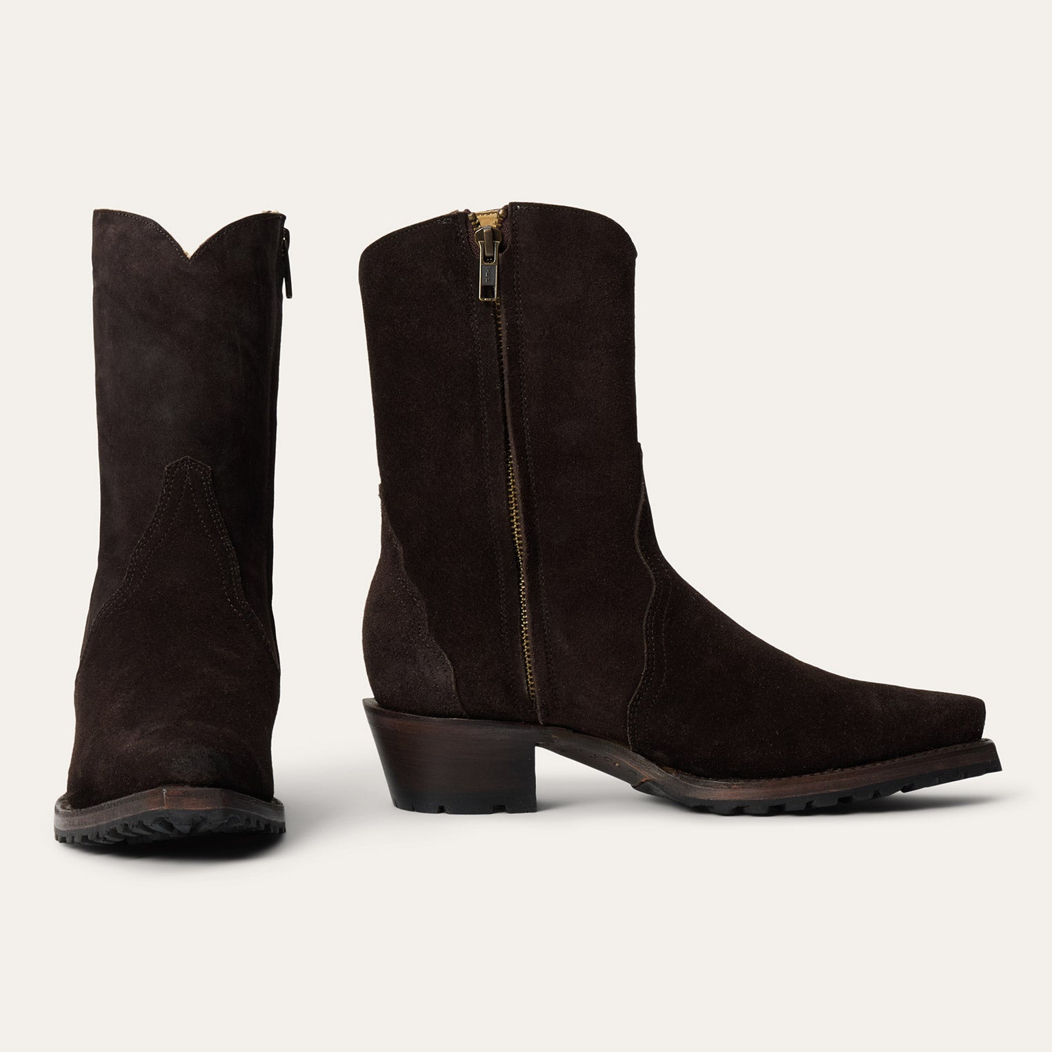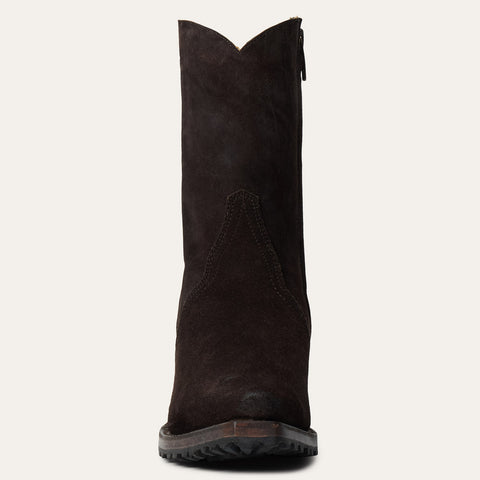 A short western boot with standout style, the Daphne Boot features a suede vamp and 9” shaft with a stylish snip toe and an inside zipper for easy on and off. A lug sole with durable brass nail construction and a hand-stacked leather heel provide a firm foundation. Inside, a cushioned insole and premium cowhide leather lining ensure all-day comfort and support.