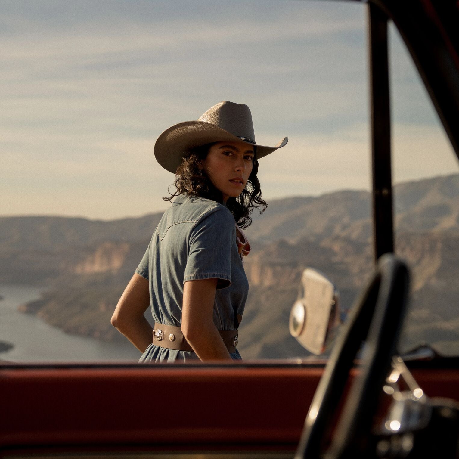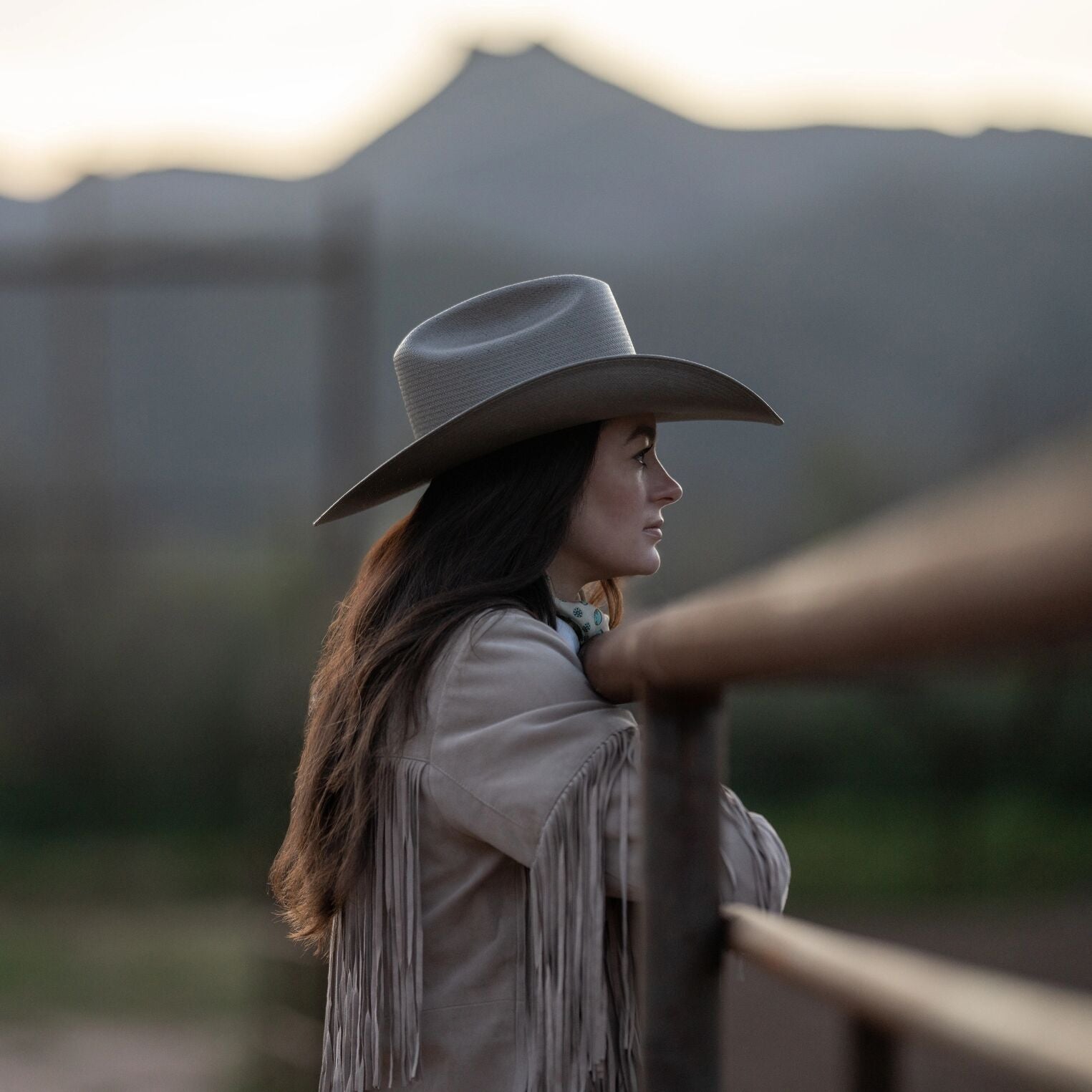 Handwoven one strand at a time in the U.S.A. from 10X quality shantung straw, the Kenton combines our legendary craftsmanship with a timeless western profile and a rich grey tone. It has a 4 ⅛” cattleman crown, 4 ¼” medium curved brim and a studded leather hatband with silver-tone concho. A genuine leather sweatband provides a time-tested, comfortable fit.