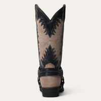 The Outlaw Rockstar is a wingtip harness boot with a leather vamp and a 13” inlay shaft and features an outlaw toe—a rugged, statement-making style—as well as a stacked leather cowboy heel. Its quality construction includes 3⁄4 welt soles, brass nails and handmade lemonwood pegs that will expand and contract with any moisture the boot may encounter. Premium leather lining and a removable Tru-X insole ensure comfort in every step.